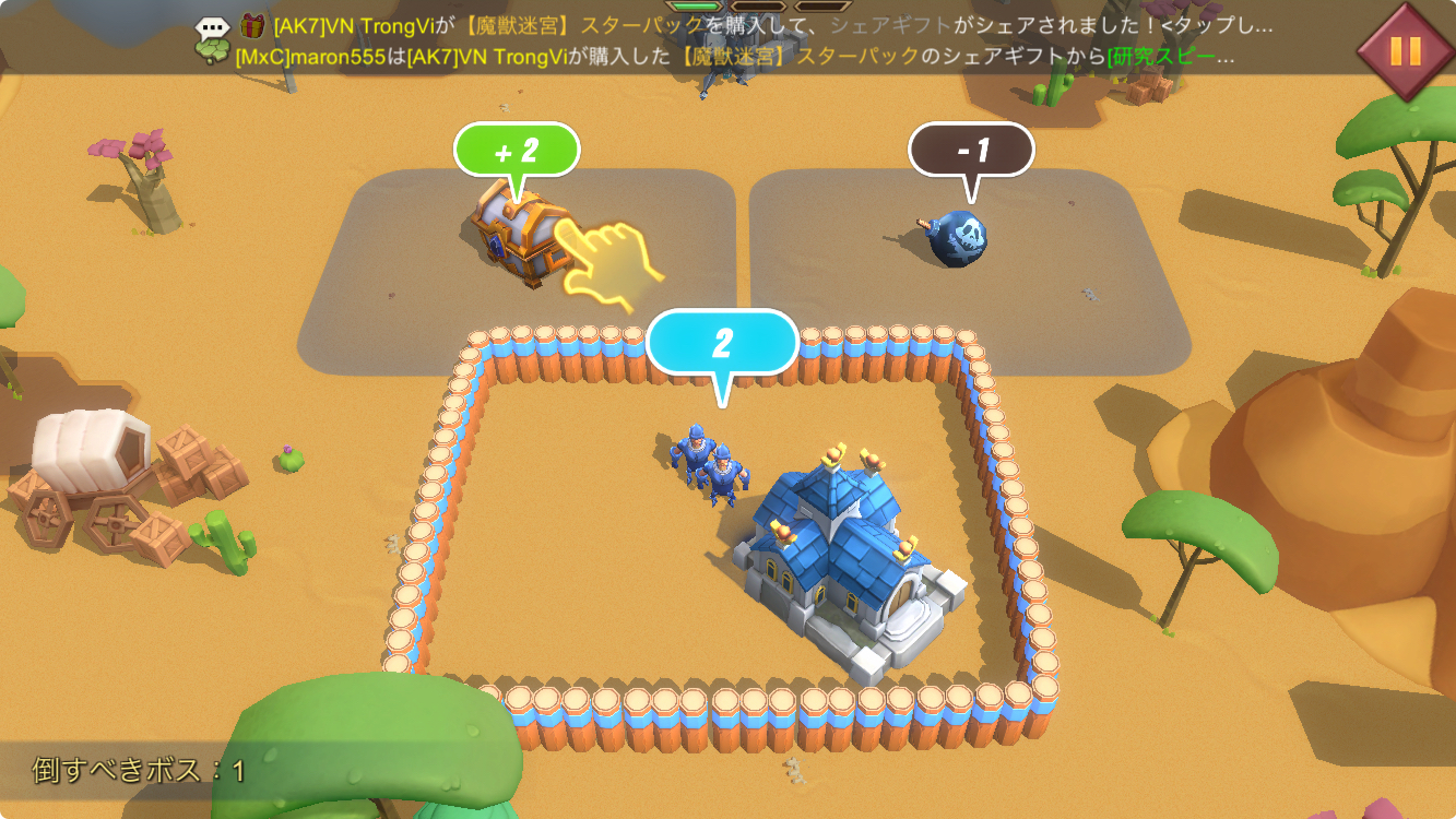 操作はシンプルで自軍の兵士数よりも小さい数の敵軍を吸収していくだけで、最終的に待ち構えているボスの数字よりも自軍の兵士の数字が多ければ勝利となります!