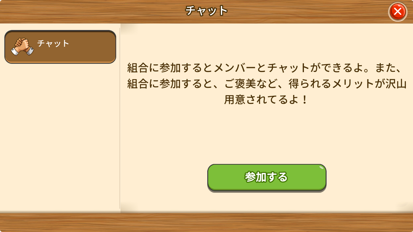 組合にはチャット機能もあり、組合メンバーとコミュニケーションを取ることができます。