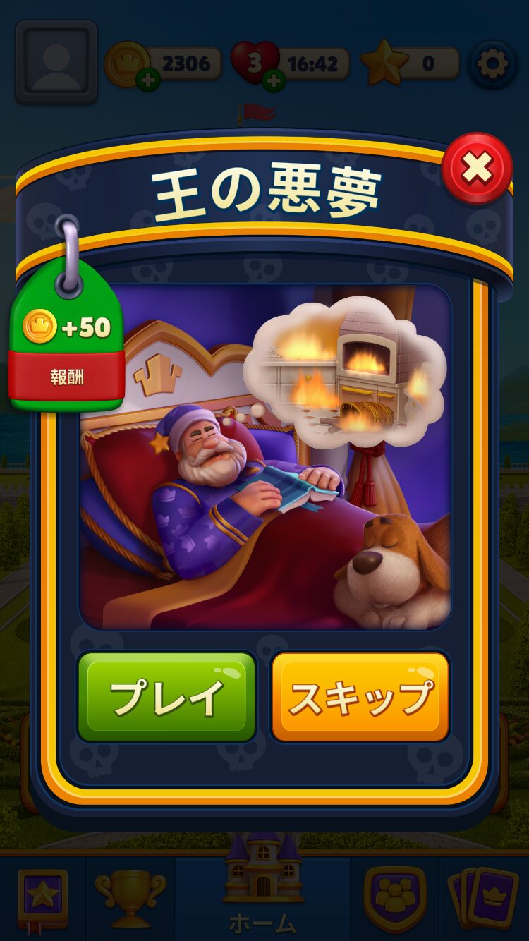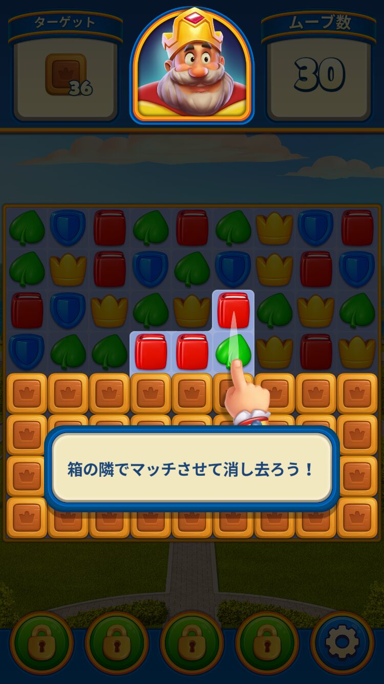 マッチ3パズルをクリアしながら、王様の城を建設したり、王様を助けるミニゲームをしたりと色々なコンテンツを楽しめるシンプルなパズルゲームです。
