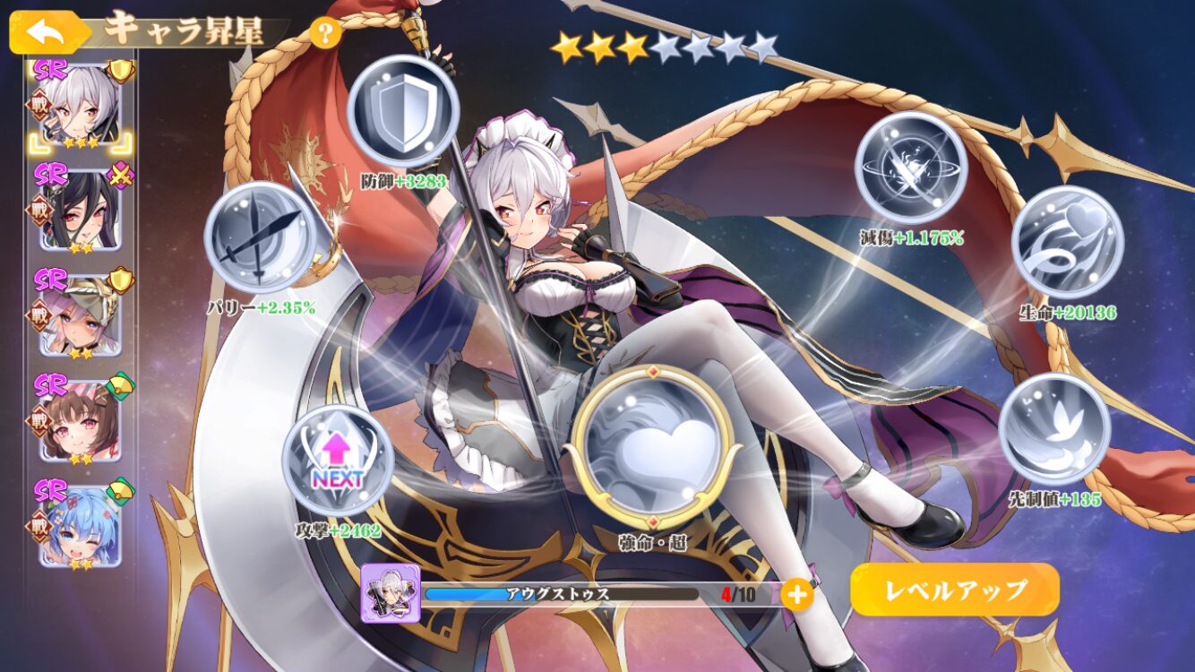 育成は特定のアイテムを使用して星の陣を解放し、星の能力を高めていくものです。この能力を上げることで自分と仲間のステータスを上げることができます。