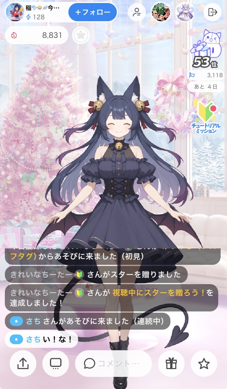 このミッションをクリアするとコインが貰えたり、視聴者としての配信への参加の仕方や雰囲気が分かるので、初心者でも始めやすい仕組みになっています。